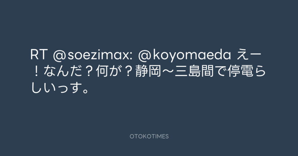 RT @soezimax: @koyomaeda えー!なんだ?何が?静岡〜三島間で停電らしいっす。 -