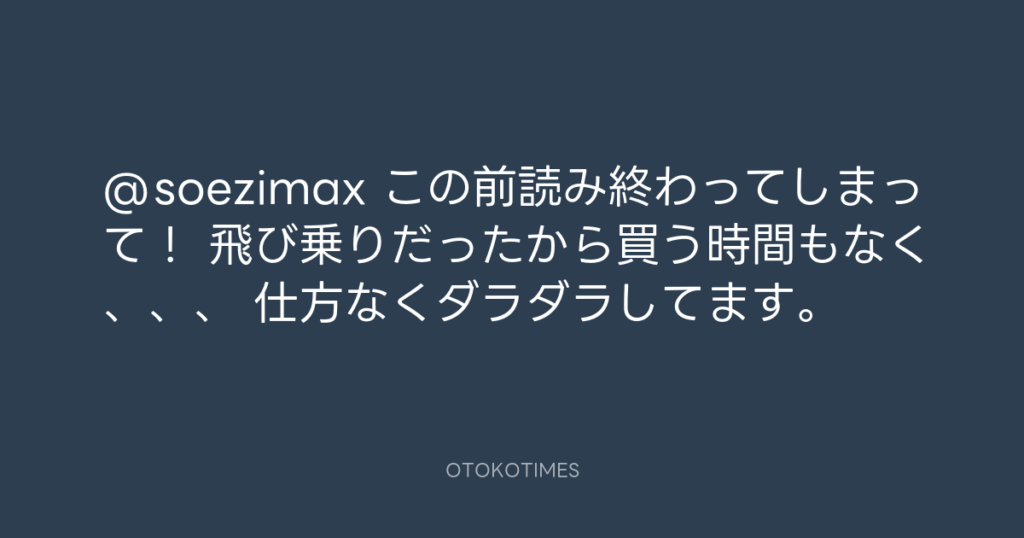 @soezimax この前読み終わってしまって! 飛び乗りだったから買う時間もなく、、、... -