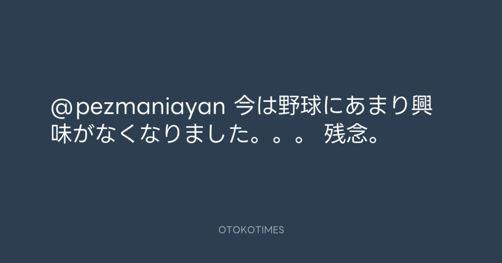 @pezmaniayan 今は野球にあまり興味がなくなりました。。。 残念。 -