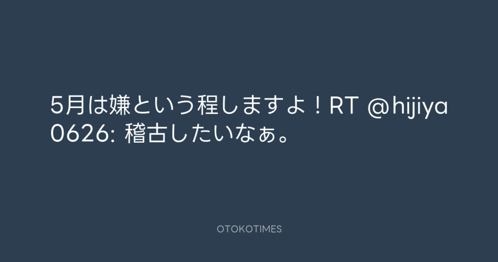 5月は嫌という程しますよ!RT @hijiya0626: 稽古したいなぁ。 -