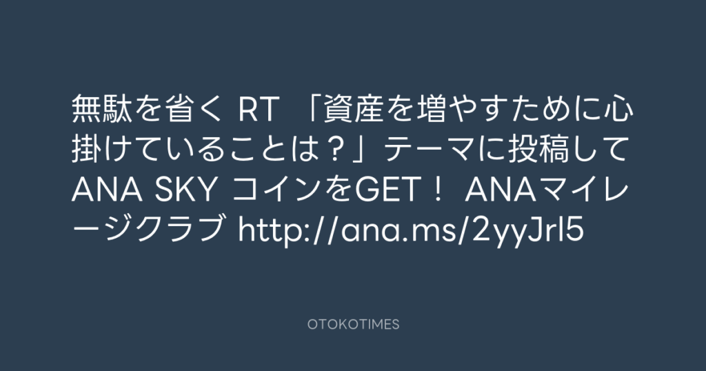 無駄を省く RT 「資産を増やすために心掛けていることは?」テーマに投稿してANA S... -