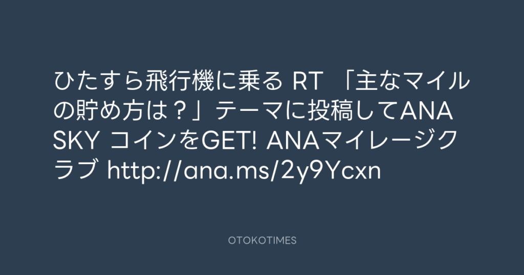 ひたすら飛行機に乗る RT 「主なマイルの貯め方は?」テーマに投稿してANA SKY コ... -