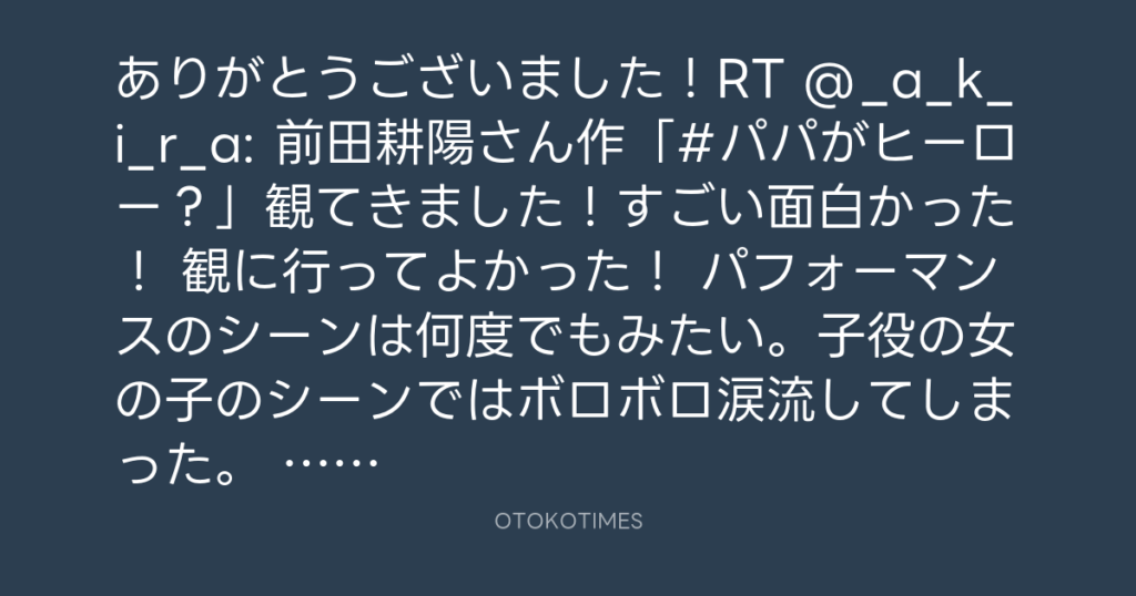 ありがとうございました!RT @_a_k_i_r_a: 前田耕陽さん作「#パパがヒーロー?」観... -