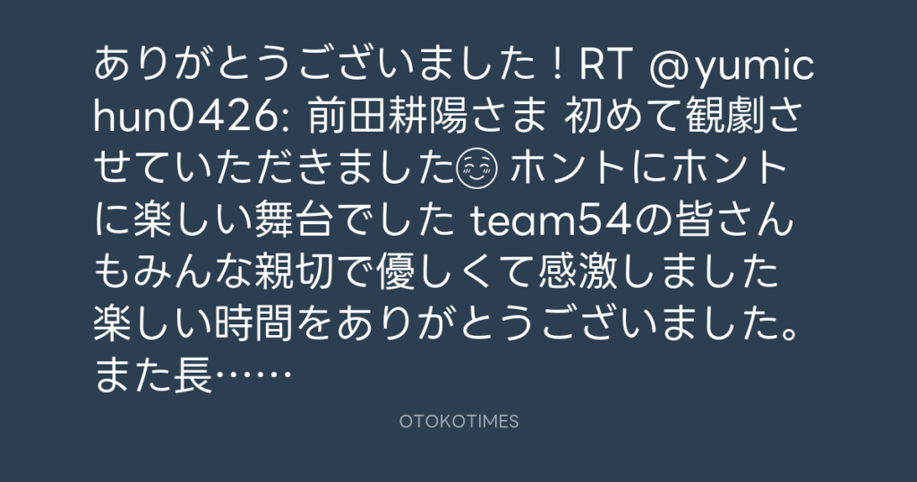 ありがとうございました!RT @yumichun0426: 前田耕陽さま👨 初めて観劇させていた... -