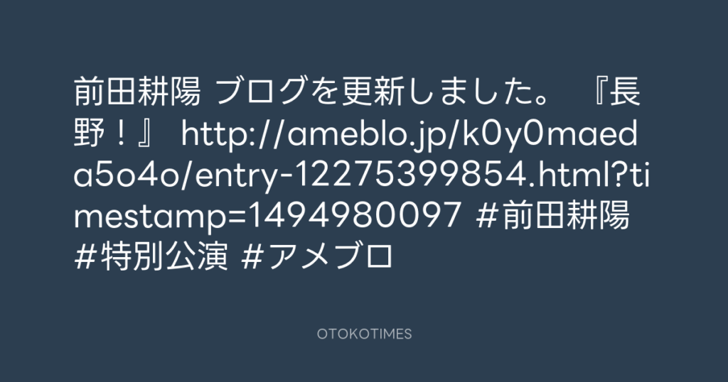前田耕陽 ブログを更新しました。 『長野!』 http://ameblo.jp/k0y0maeda5o4o/ent... -