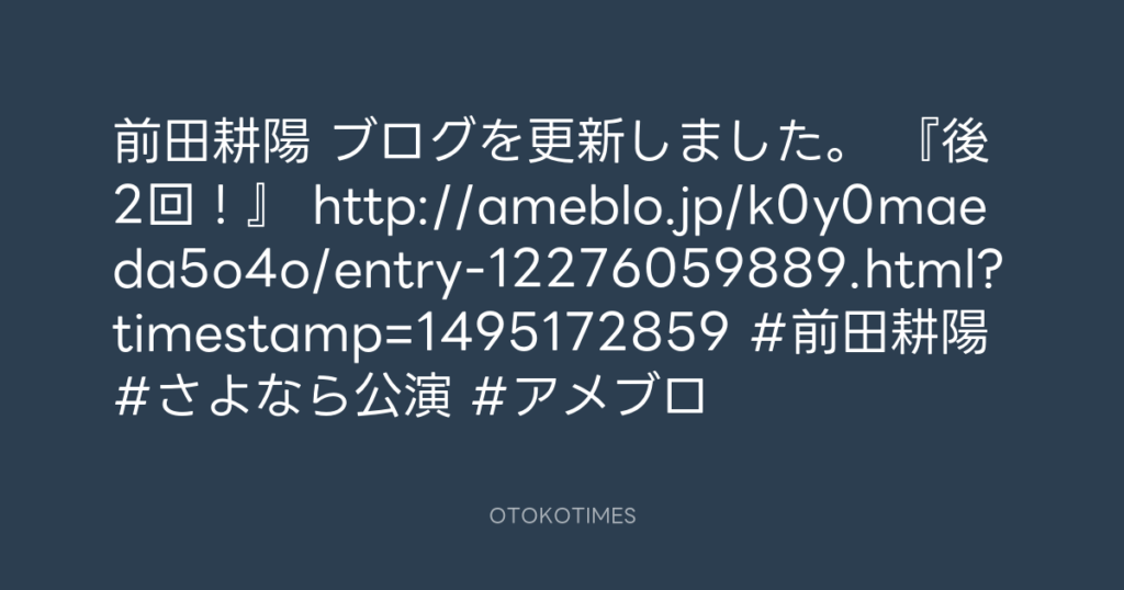 前田耕陽 ブログを更新しました。 『後2回!』 http://ameblo.jp/k0y0maeda5o4o/en... -