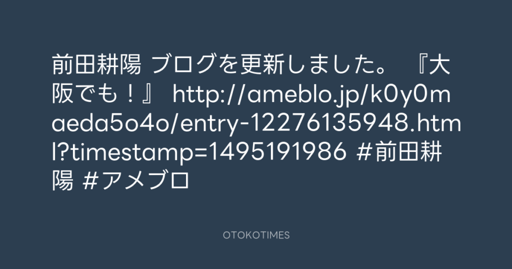 前田耕陽 ブログを更新しました。 『4回!』 http://ameblo.jp/k0y0maeda5o4o/entr... -