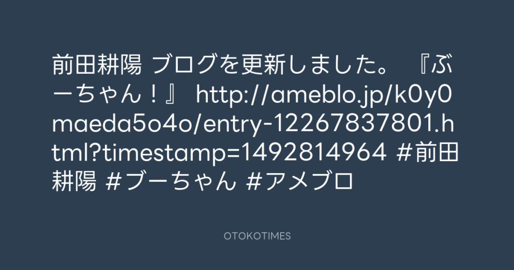 前田耕陽 ブログを更新しました。 『ぶーちゃん!』 http://ameblo.jp/k0y0maeda5o... -