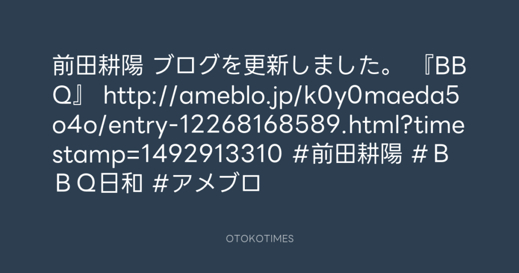 前田耕陽 ブログを更新しました。 『BBQ』 http://ameblo.jp/k0y0maeda5o4o/entry-... -