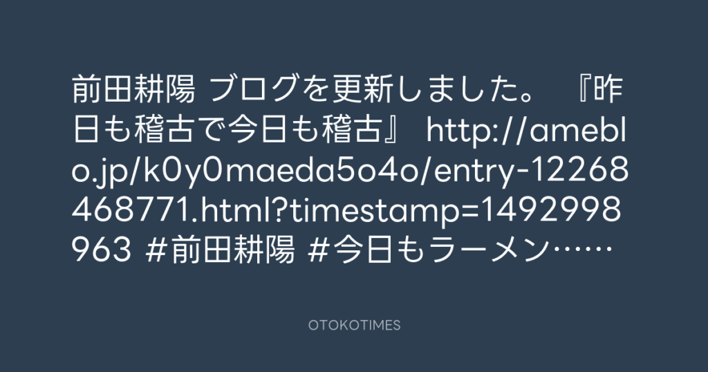 前田耕陽 ブログを更新しました。 『うっ!』 http://ameblo.jp/k0y0maeda5o4o/ent... -