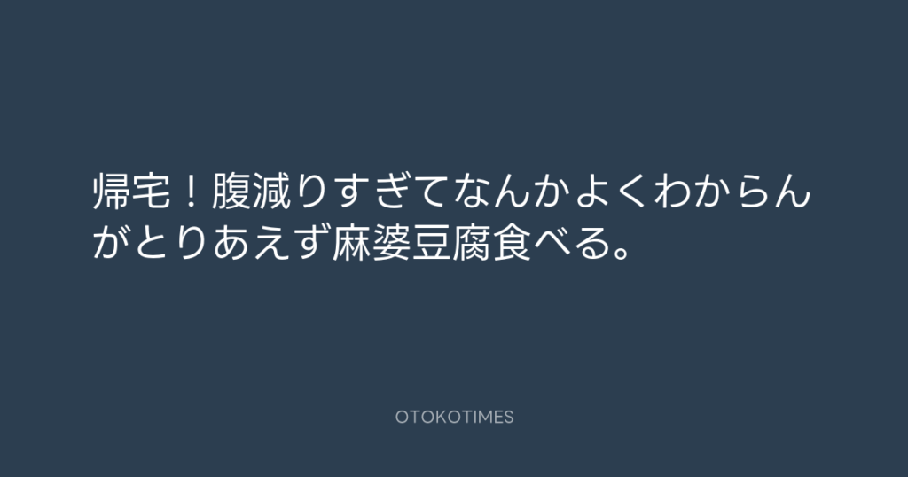 帰宅!腹減りすぎてなんかよくわからんがとりあえず麻婆豆腐食べる。 -