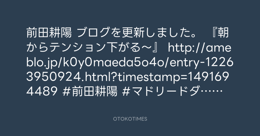 前田耕陽 ブログを更新しました。 『朝からテンション下がる〜』 http://ameblo.jp... -