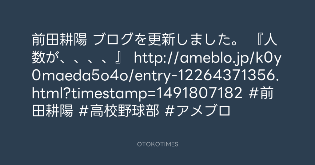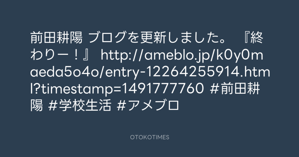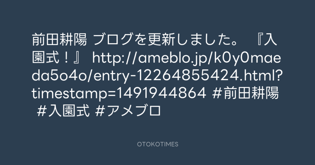 前田耕陽 ブログを更新しました。 『入園式!』 http://ameblo.jp/k0y0maeda5o4o/e... -
