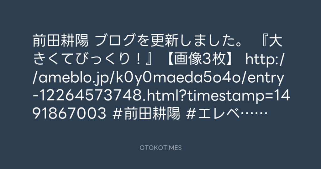 前田耕陽 ブログを更新しました。 『大きくてびっくり!』【画像3枚】 http://ameb... -