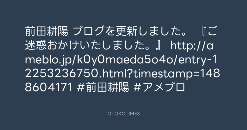 前田耕陽 ブログを更新しました。 『ご迷惑おかけいたしました。』 http://ameblo....