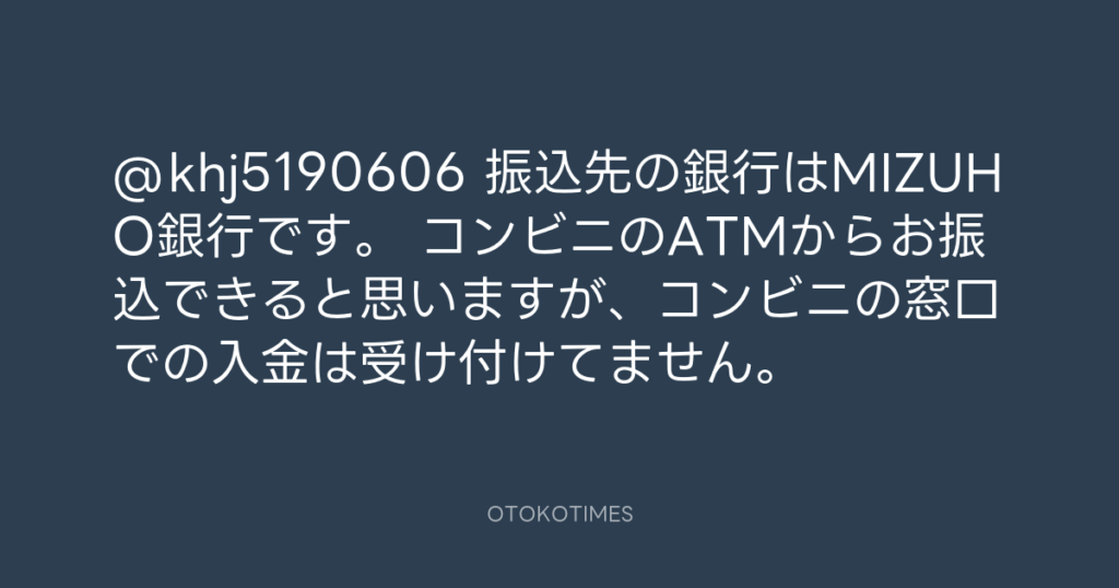 @khj5190606 振込先の銀行はMIZUHO銀行です。 コンビニのATMからお振込できると思... -