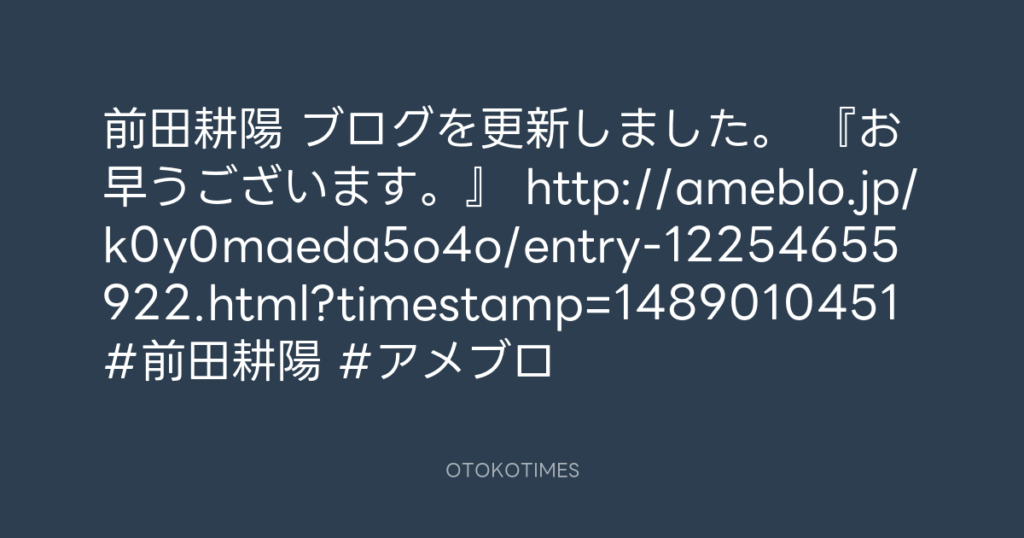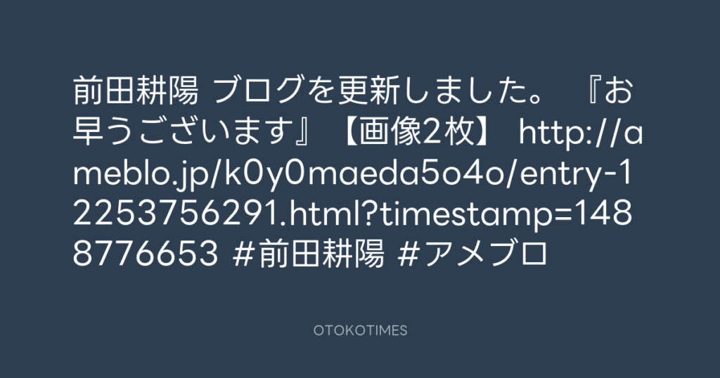 前田耕陽 ブログを更新しました。 『お早うございます』【画像2枚】 http://ameblo... -
