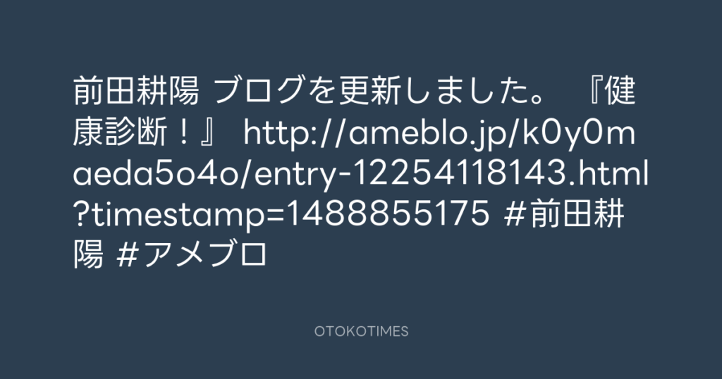 前田耕陽 ブログを更新しました。 『健康診断!』 http://ameblo.jp/k0y0maeda5o4o... -