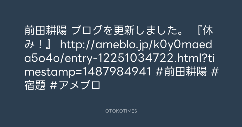 前田耕陽 ブログを更新しました。 『休み!』 http://ameblo.jp/k0y0maeda5o4o/ent...
