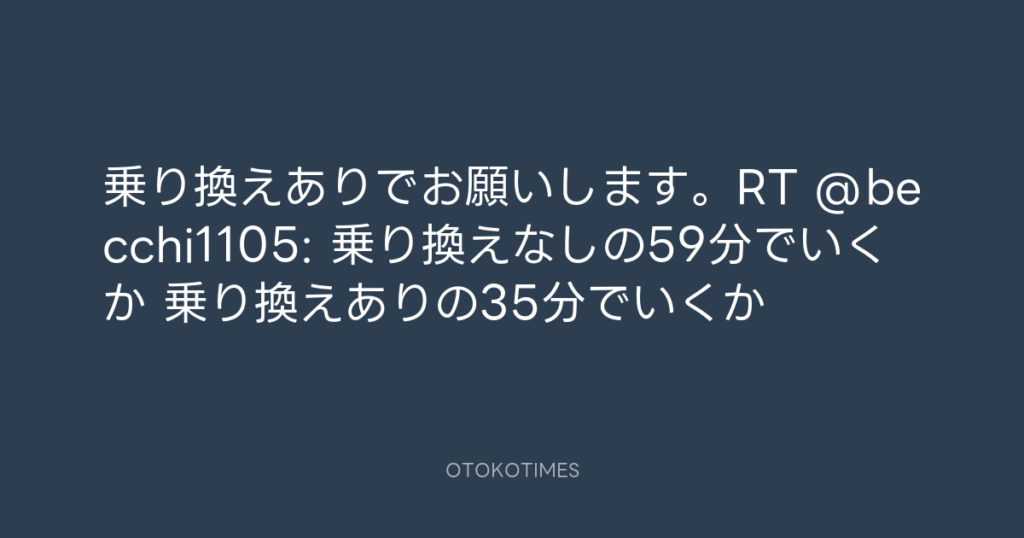 乗り換えありでお願いします。RT @becchi1105: 乗り換えなしの59分でいくか 乗り換... -