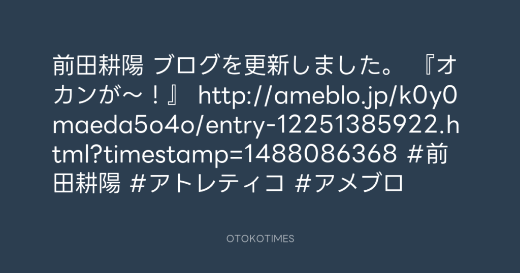 前田耕陽 ブログを更新しました。 『オカンが〜!』 http://ameblo.jp/k0y0maeda5o... -
