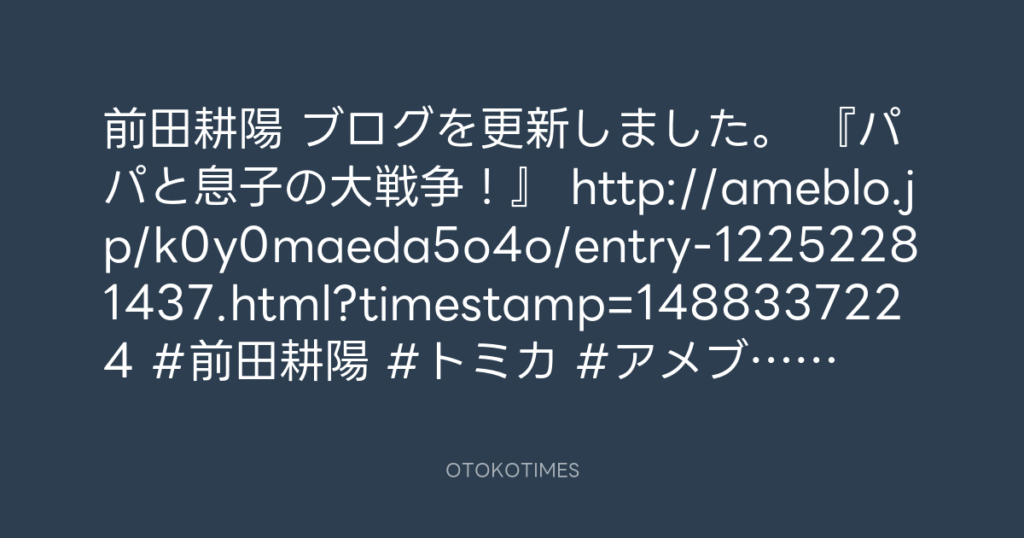前田耕陽 ブログを更新しました。 『パパと息子の大戦争!』 http://ameblo.jp/k0y... -
