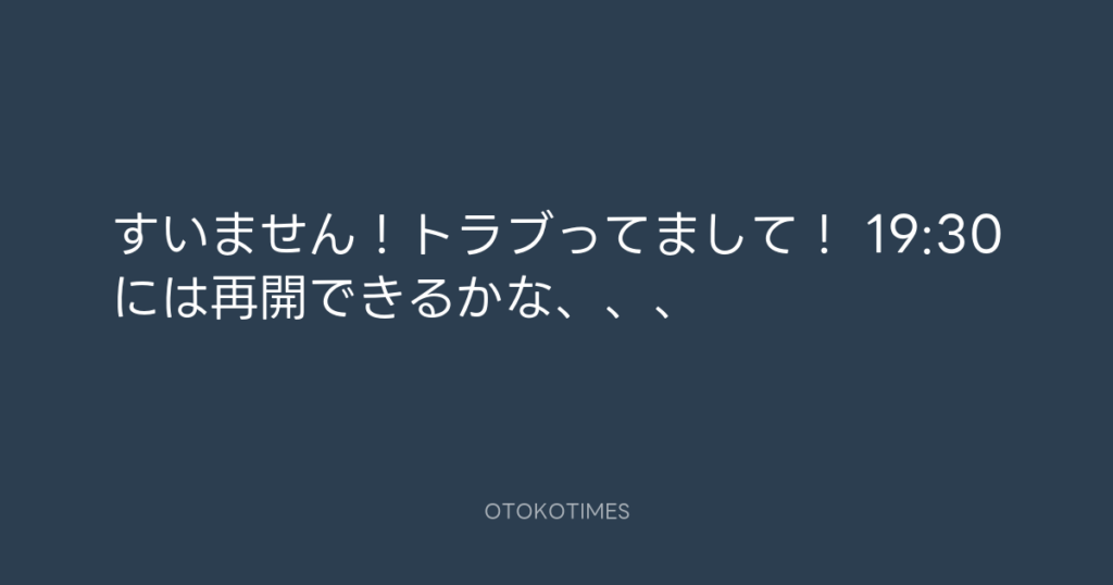 すいません!トラブってまして! 19:30には再開できるかな、、、