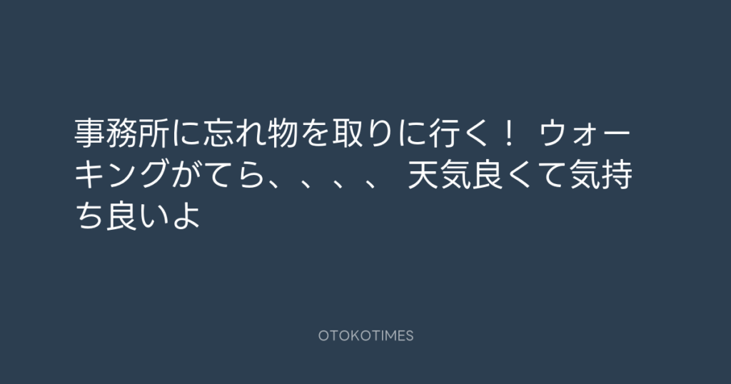 事務所に忘れ物を取りに行く! ウォーキングがてら、、、、 天気良くて気持ち良いよ -