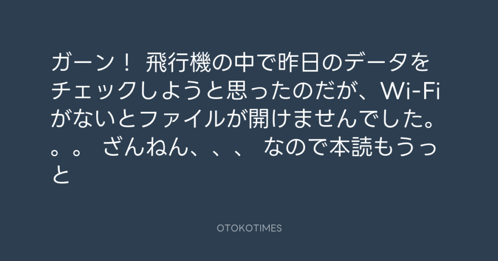 ガーン! 飛行機の中で昨日のデータをチェックしようと思ったのだが、Wi-Fiがない... -