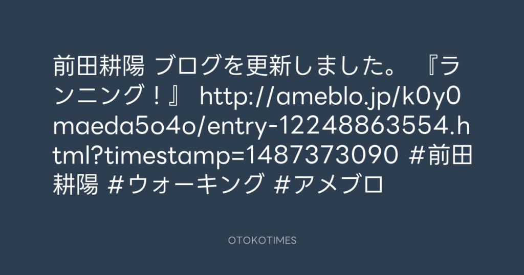 前田耕陽 ブログを更新しました。 『ランニング!』 http://ameblo.jp/k0y0maeda5o...