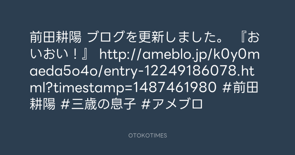前田耕陽 ブログを更新しました。 『おいおい!』 http://ameblo.jp/k0y0maeda5o4o... -