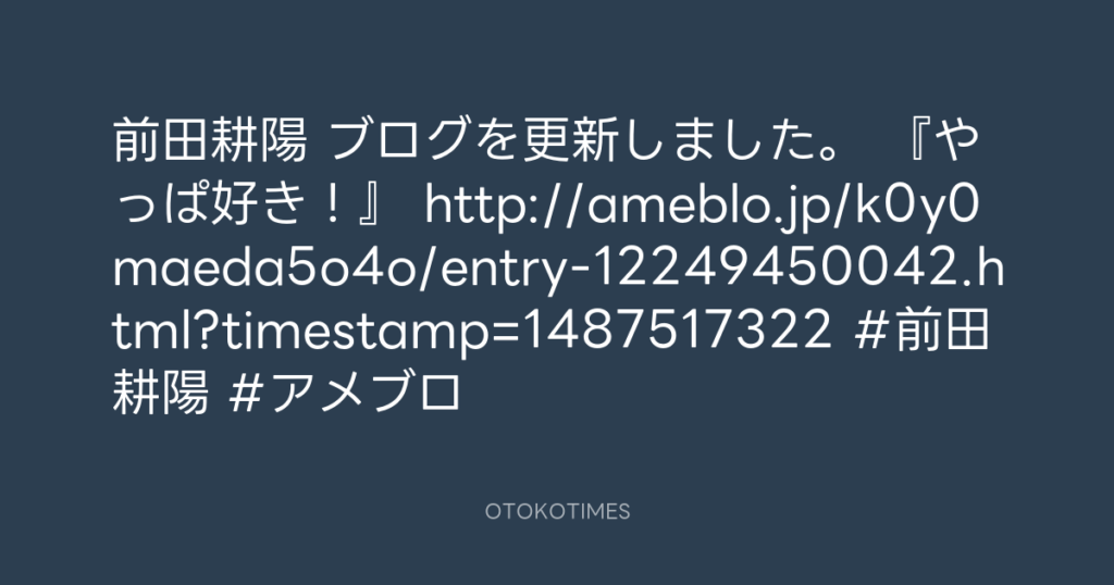 前田耕陽 ブログを更新しました。 『やっぱ好き!』 http://ameblo.jp/k0y0maeda5o... -