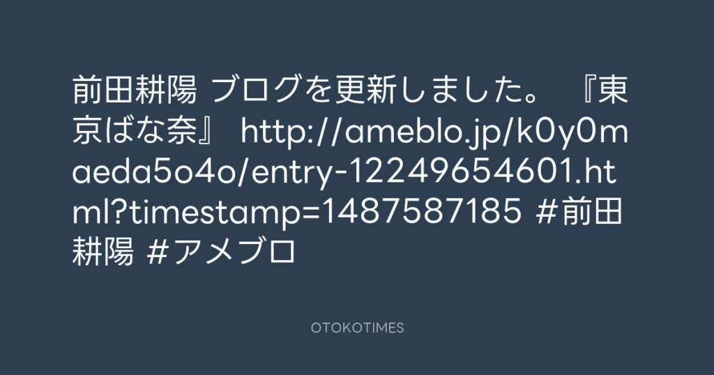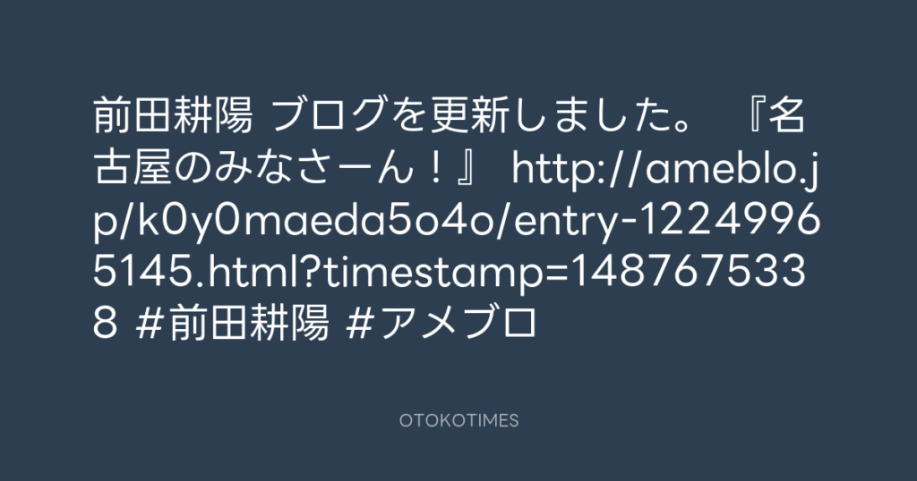 前田耕陽 ブログを更新しました。 『名古屋のみなさーん!』 http://ameblo.jp/k0y... -