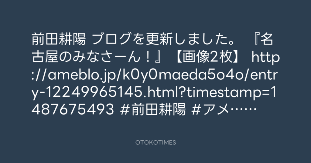 前田耕陽 ブログを更新しました。 『名古屋のみなさーん!』【画像2枚】 http://am... -