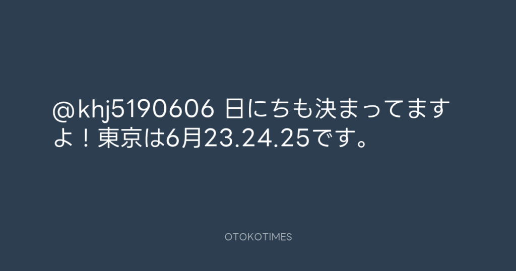 @khj5190606 日にちも決まってますよ!東京は6月23.24.25です。 -