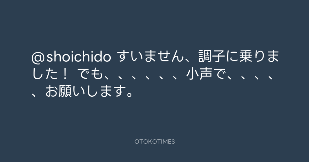 @shoichido すいません、調子に乗りました! でも、、、、、、小声で、、、、、お... -