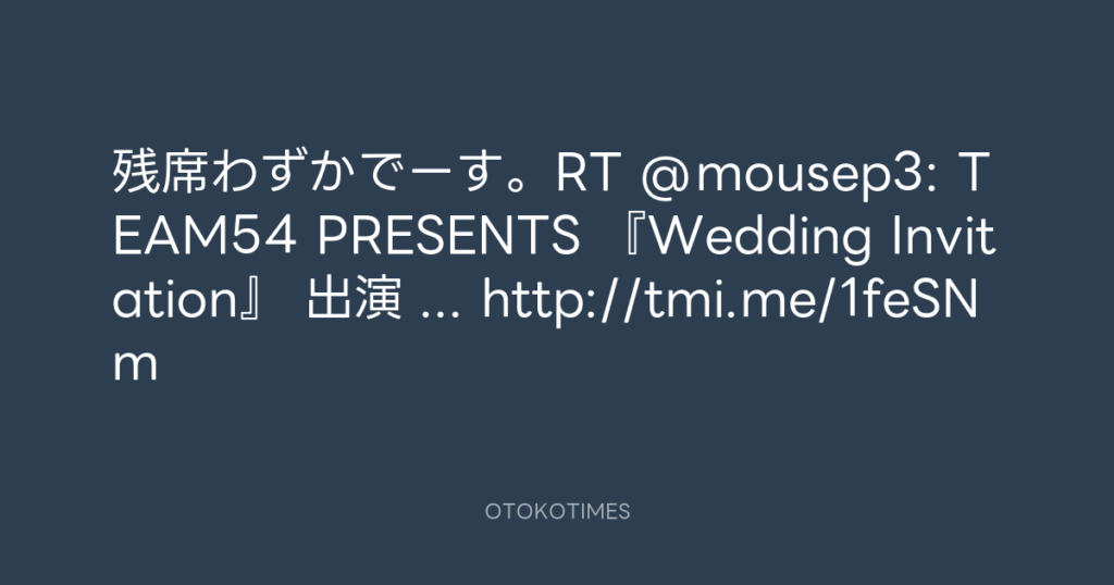 残席わずかでーす。RT @mousep3: TEAM54 PRESENTS 『Wedding Invitation』 出演 ..... -