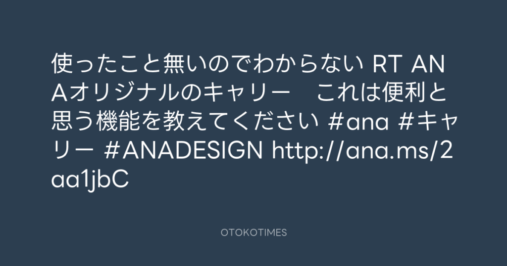 使ったこと無いのでわからない RT ANAオリジナルのキャリー これは便利と思う機能... -