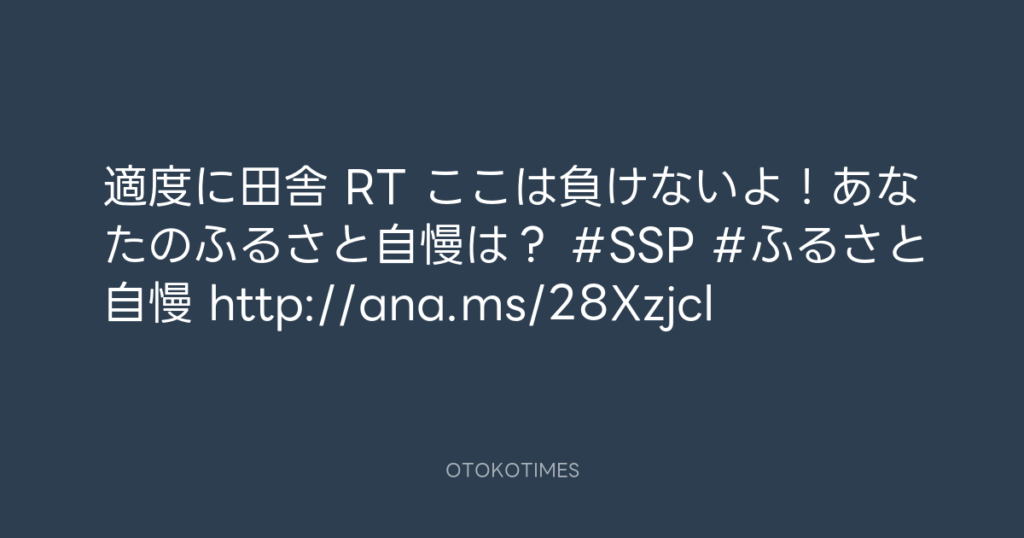 適度に田舎 RT ここは負けないよ!あなたのふるさと自慢は? #SSP #ふるさと自慢 h... -