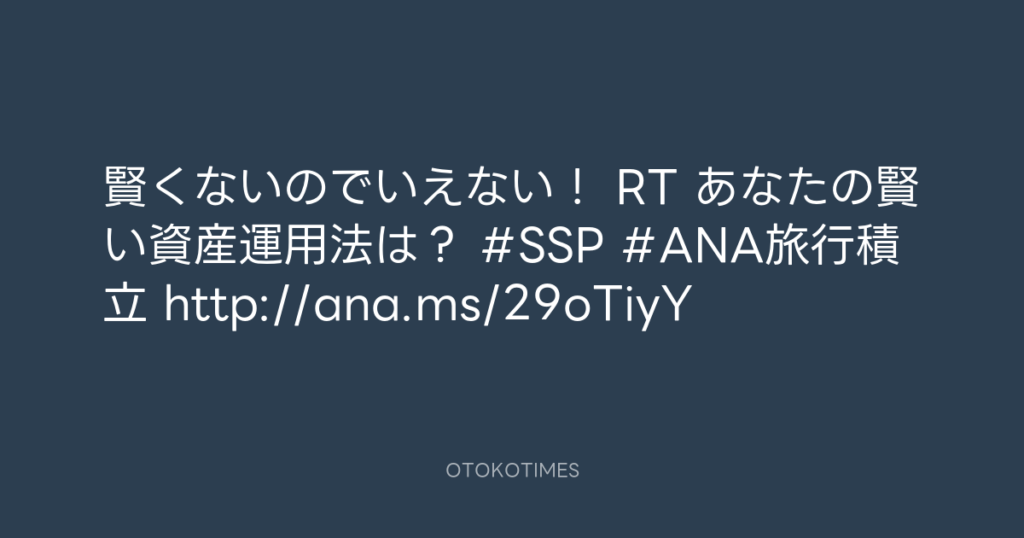 賢くないのでいえない! RT あなたの賢い資産運用法は? #SSP #ANA旅行積立 http:/... -