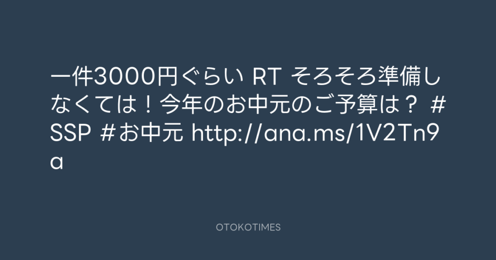 一件3000円ぐらい RT そろそろ準備しなくては!今年のお中元のご予算は? #SSP #お... -