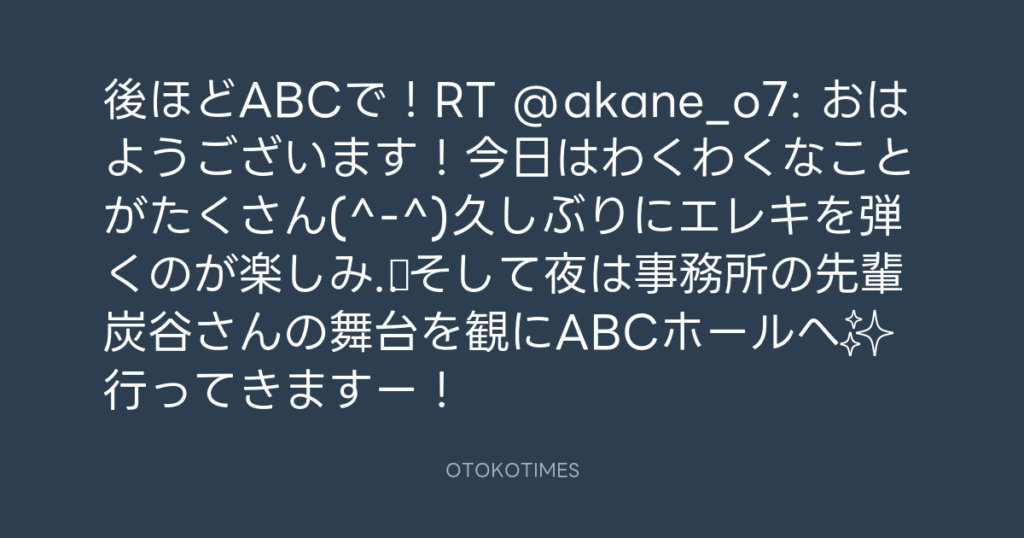 後ほどABCで!RT @akane_o7: おはようございます!今日はわくわくなことがたくさん... -