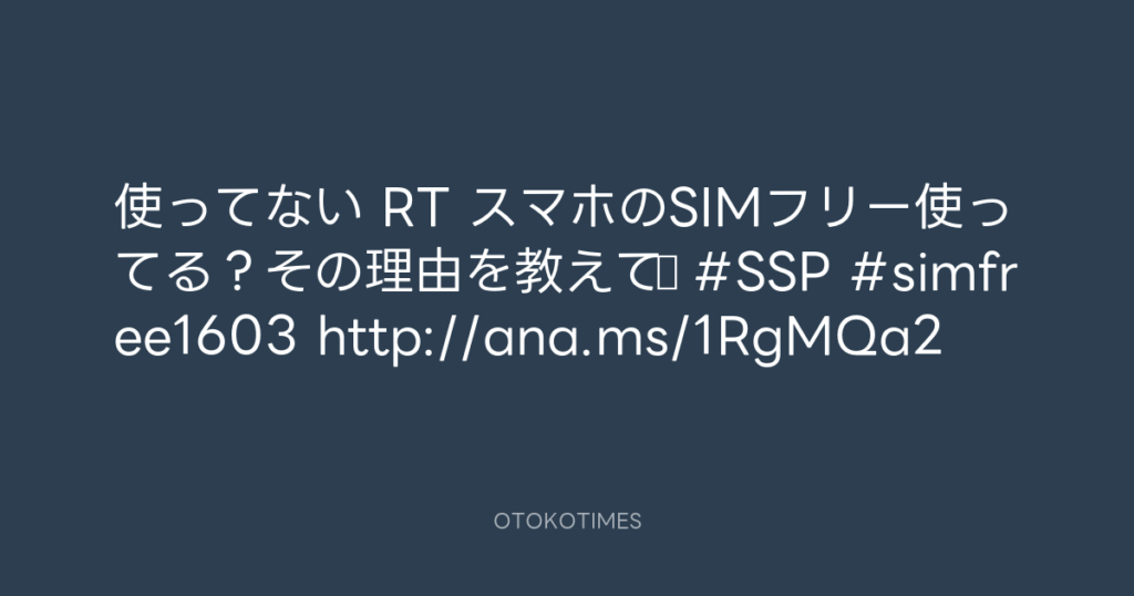 使ってない RT スマホのSIMフリー使ってる?その理由を教えて♪ #SSP #simfree1603 ... -