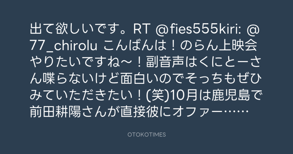 出て欲しいです。RT @fies555kiri: @77_chirolu こんばんは!のらん上映会やりたい... -