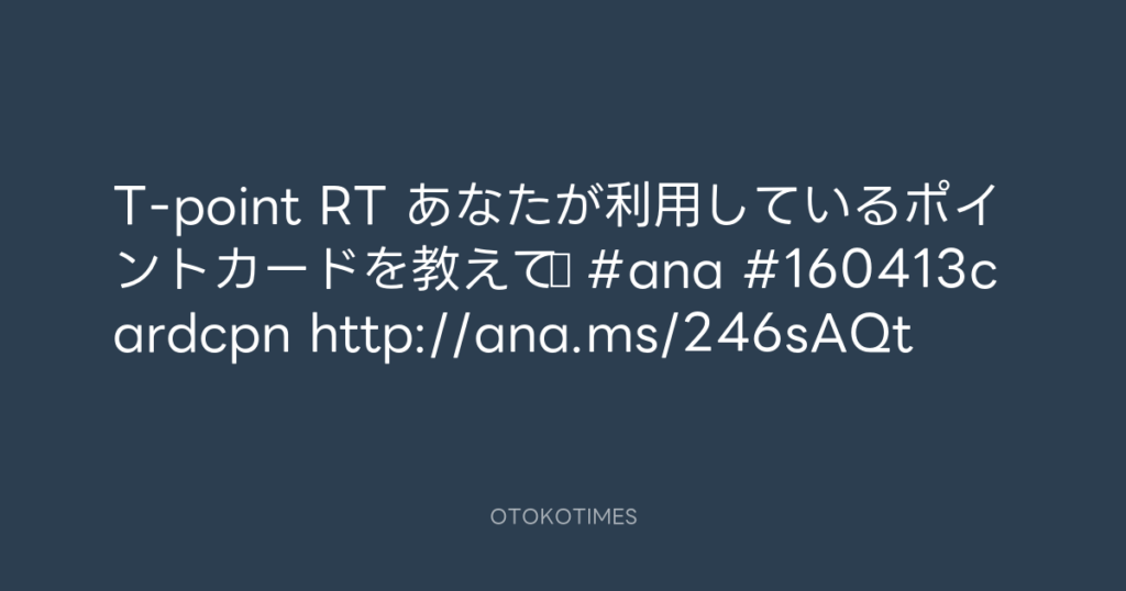 T-point RT あなたが利用しているポイントカードを教えて♪ #ana #160413cardcpn ht... -