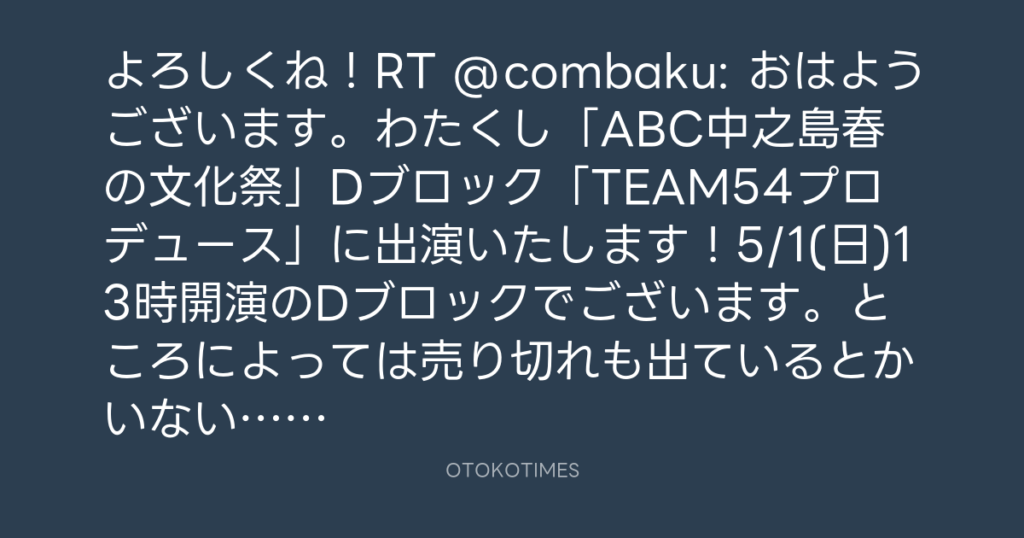 よろしくね!RT @combaku: おはようございます。わたくし「ABC中之島春の文化祭」D... -