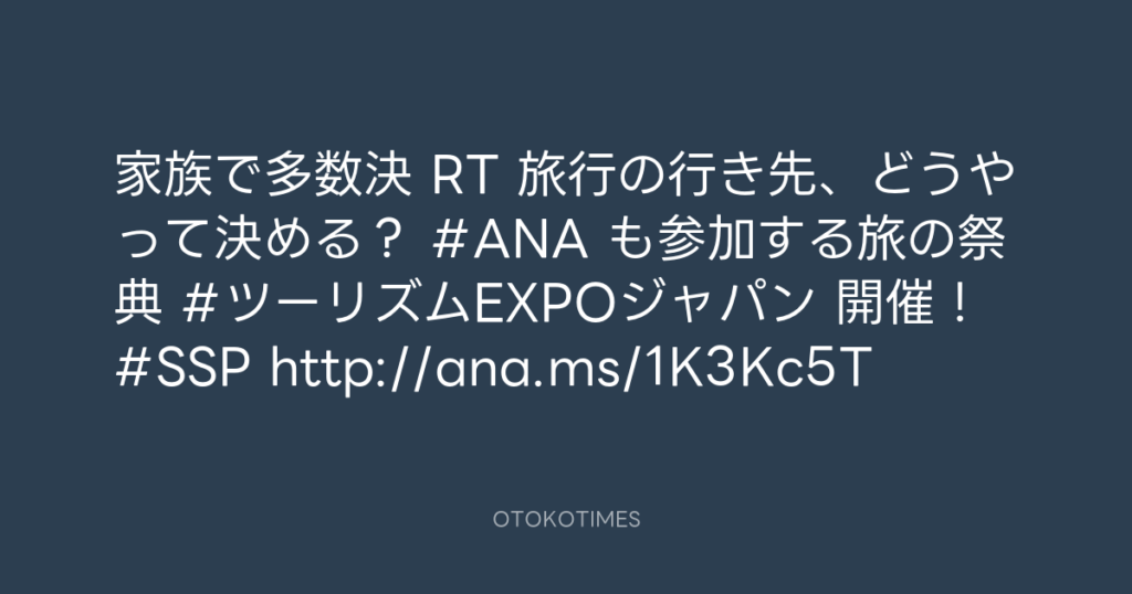 家族で多数決 RT 旅行の行き先、どうやって決める? #ANA も参加する旅の祭典 #ツ... -