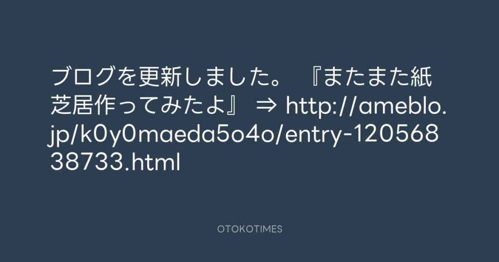 ブログを更新しました。 『またまた紙芝居作ってみたよ』 ⇒ http://ameblo.jp/k0y0...