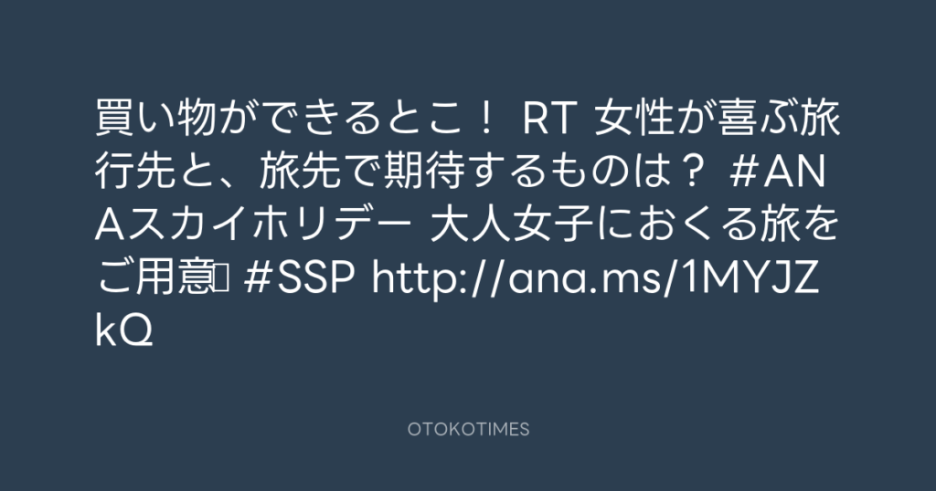 買い物ができるとこ! RT 女性が喜ぶ旅行先と、旅先で期待するものは? #ANAスカイ... -