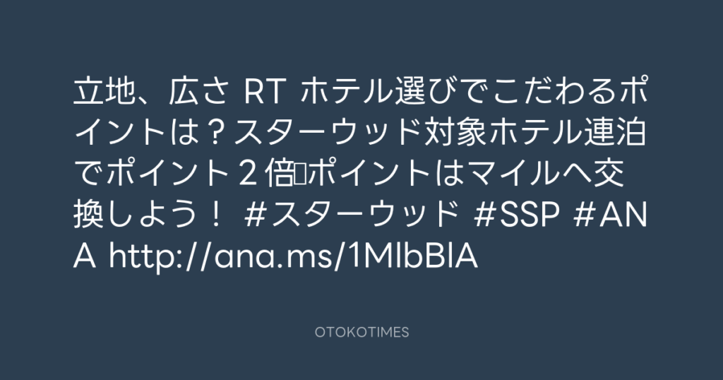 立地、広さ RT ホテル選びでこだわるポイントは?スターウッド対象ホテル連泊でポ... -